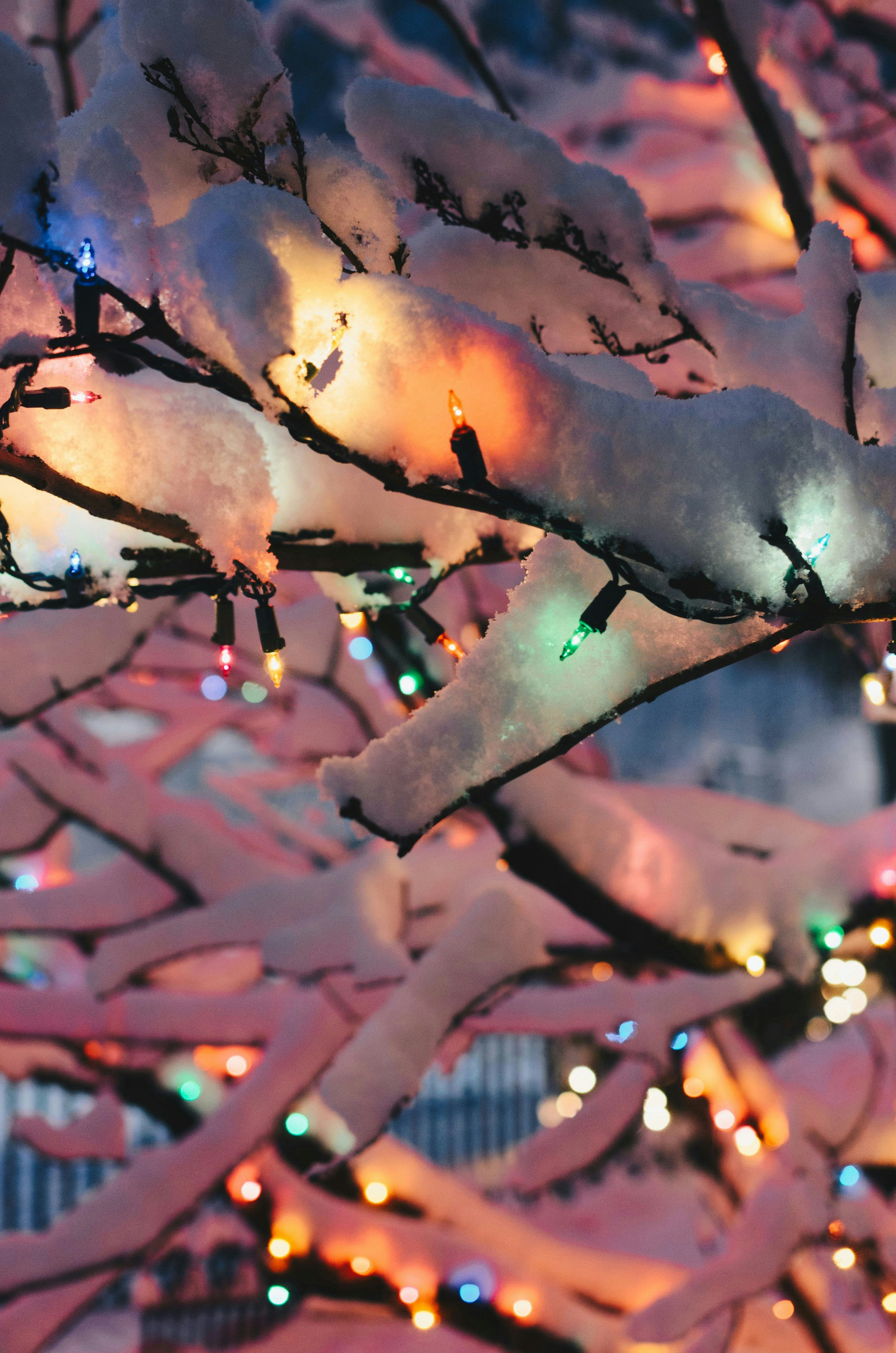 slythindor100’s early bird prompt N—Christmas Lights on Snow-covered Trees (picture under the cut) and